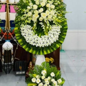 XT HCB 944 – Hoa Chia Buồn Hồng Và Lan Thái Trắng Sang