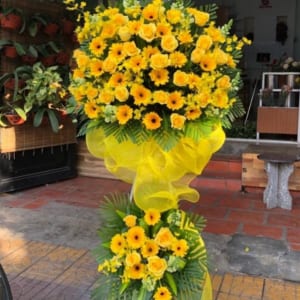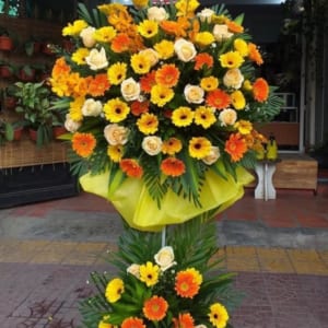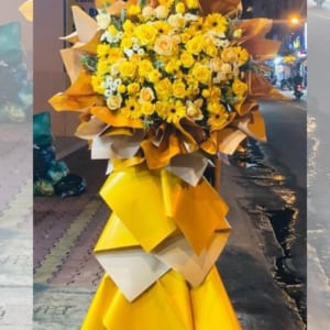 XT HKT 241 – Hoa Khai Trương 1 Tầng Tone Vàng Kiểu Hiện Đại
