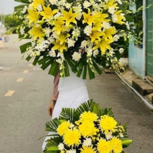 XT HCB 933 – Hoa Chia Buồn Tone Vàng Kính Viếng Người Lớn Tuổi
