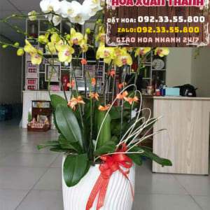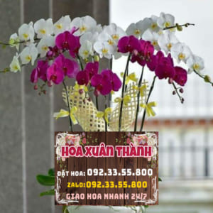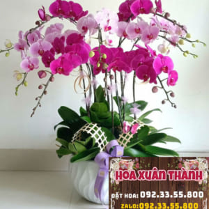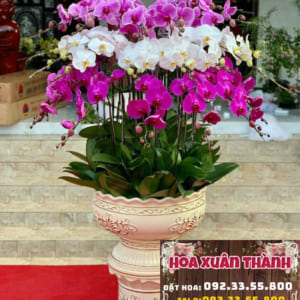 XT LHD 345 – Chậu Lan Hồ Điệp Trắng Tím 6 Cành